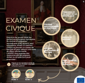 Page “S’entrainer à l’examen civique” de l’ADATE :